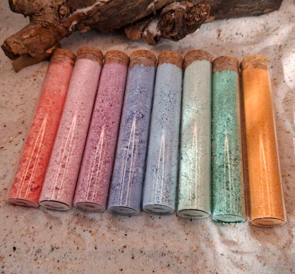 Epsom zout, Keltisch zeezout, Middelandse zeezout, natuurlijke citroenzuur kristallen, Himalaya zout, puur verfijnd zuiveringszout, essentiële oliën, Mica natural mineral kleurpoeder (optioneel).